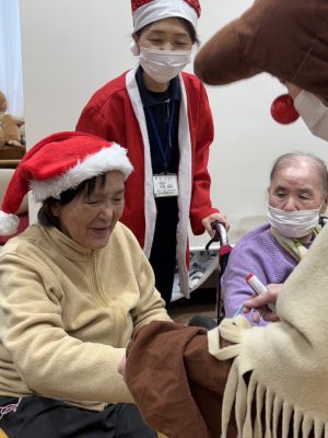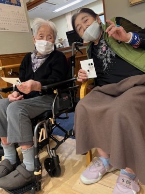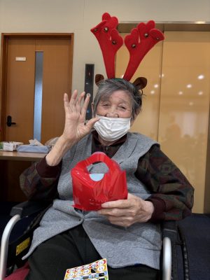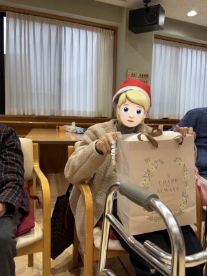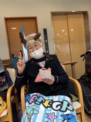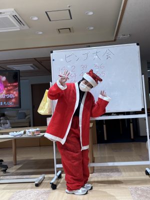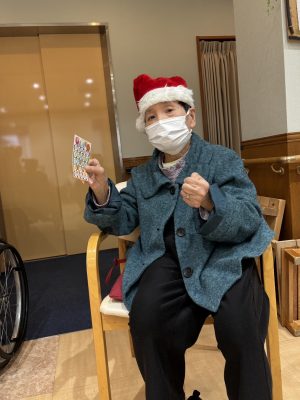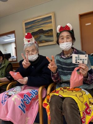 ハイ! ビンゴ大会スタートです☆いっぱいあいたよ~~ サンタさんからプレゼント🎁今回はカイロやクッションなどのあったかグッズです