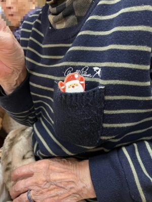 ケーキにのってたサンタを胸ポケットに・・・🎅