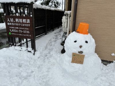 お正月飾りも・・・正月に降った雪で雪だるまちゃん⛄作りました